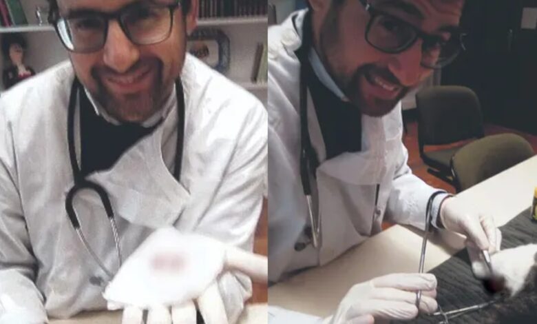 As fotografias a que a ‘Sábado’ teve acesso, mostram que a intervenção conduzida por Pedro Frazão decorreu numa secretária, com o animal deitado em cima de uma simples toalha. As imagens revelam ainda o resultado da cirurgia, e também o rasto de sangue provocado por aquela intervenção.