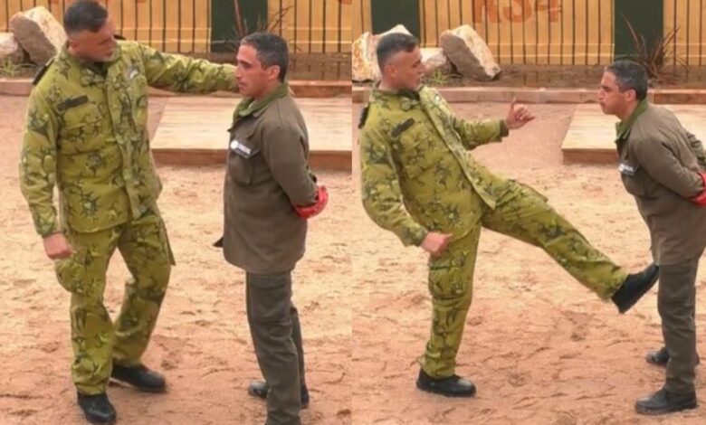 O ator acabou por se assustar com o gesto inesperado do instrutor, que não lhe chegou a tocar, um momento que ‘arrancou’ várias gargalhadas aos restantes recrutas.